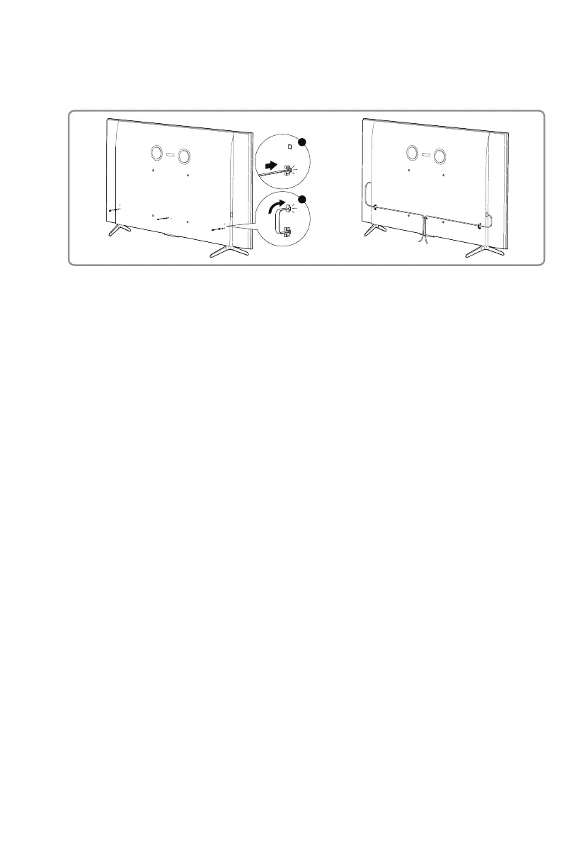 Insert the cable clips into the back of the TV and route the cables as illustrated.