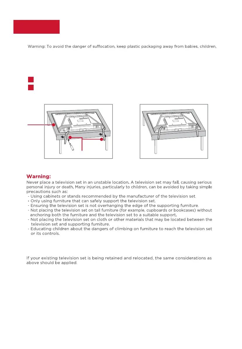 - ALWAYS route cords and cables connected to your television so they cannot be tripped over,