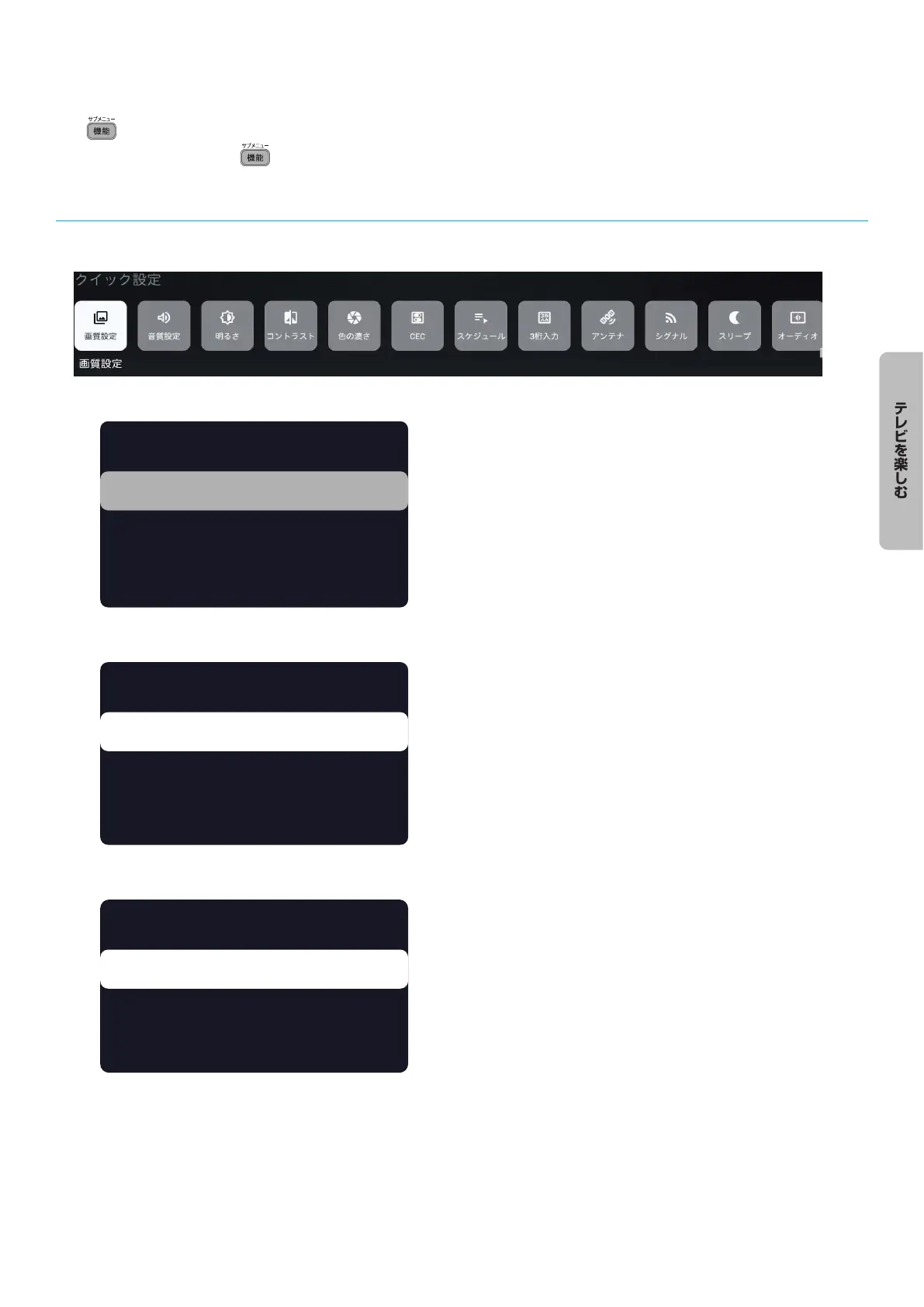 ● サブメニューで選択できるオプションは、放送の種類、外部機器の有無などによって異なります。選択できないオプション