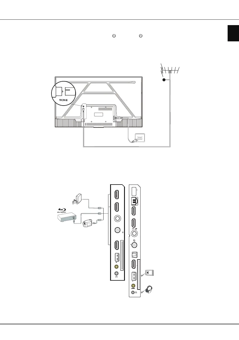 To switch on TV after connecting power cord, press or
