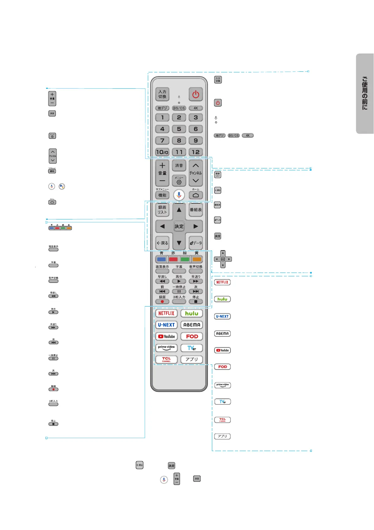 ●● リモコンは、テレビに附属の専用リモコンのみを使用してください。●専用リモコン以外では、外観が類似していたとしても、
