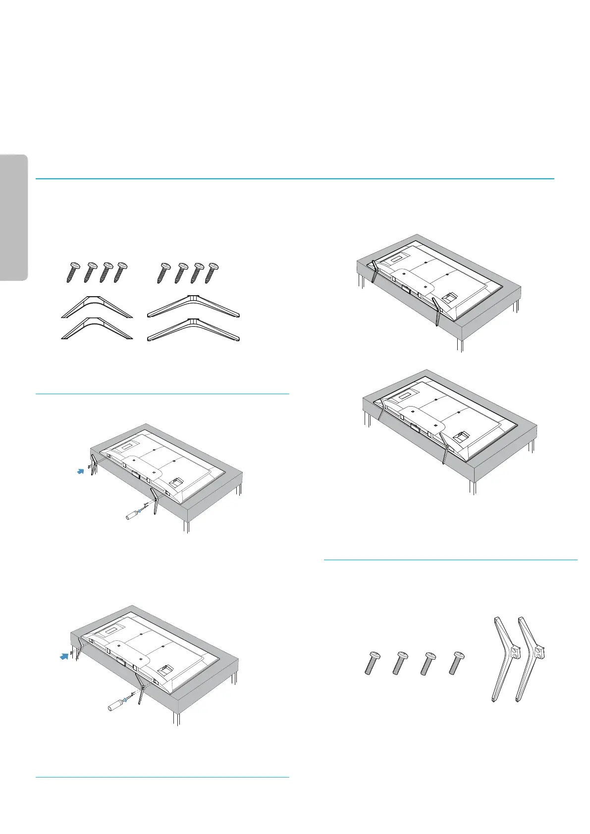 ● 組立中に画面に傷がつかないよう、画面の下に軟らかい布などを置くようにしてください。