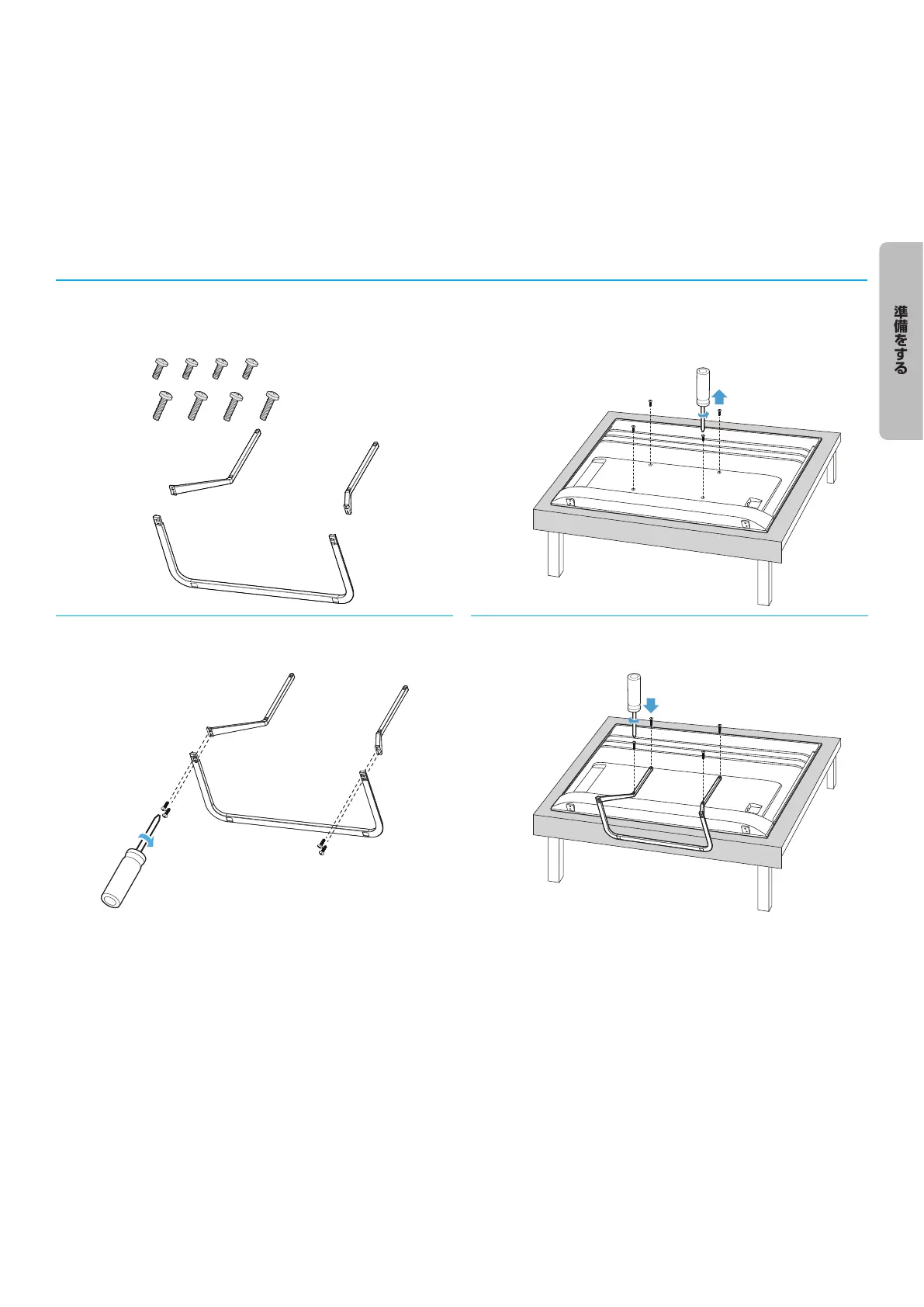 ●● 組立中に画面に傷がつかないよう、画面の下に軟らかい布などを置くようにしてください。