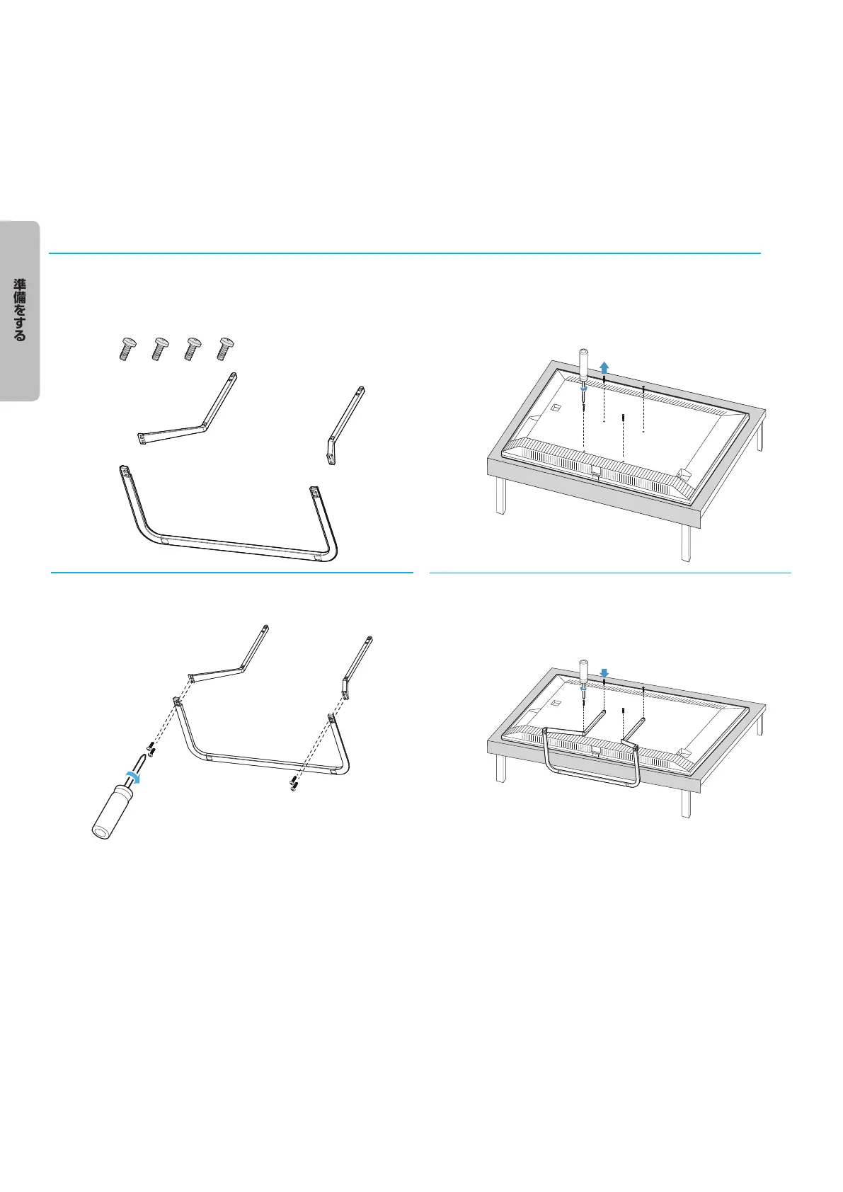 ●● 組立中に画面に傷がつかないよう、画面の下に軟らかい布などを置くようにしてください。