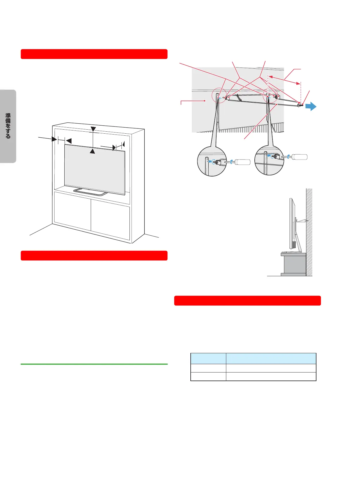 ●● テレビを設置する前に、設置面がテレビの重さに耐えるこ