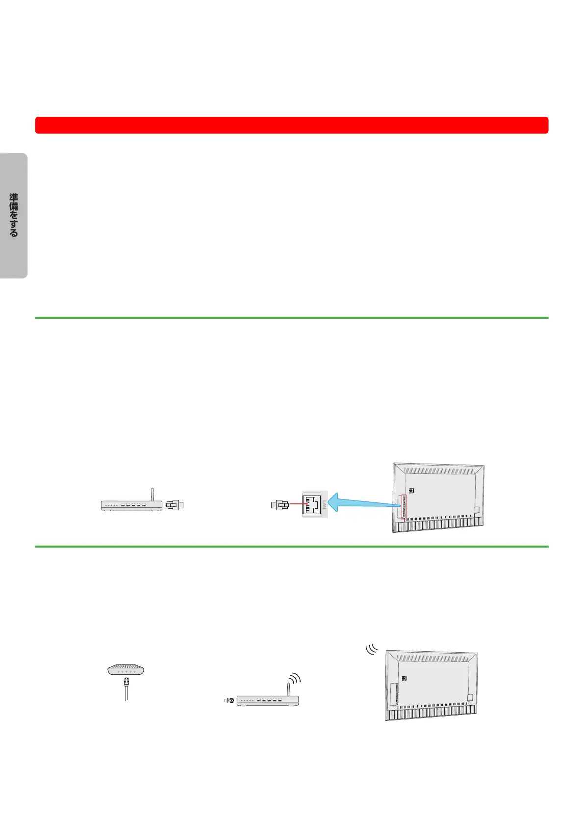 ●● テレビをインターネットに接続する方法として、有線接続と無線接続があります。