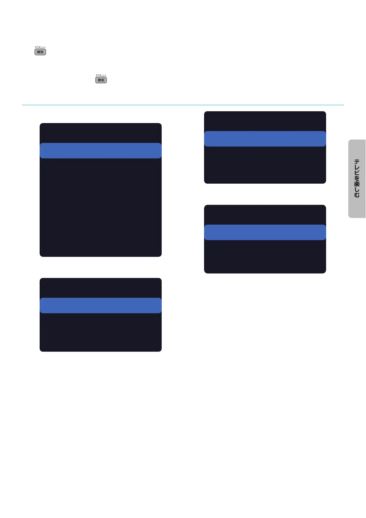 ●● 以下のサブメニュー表示は、4K●BS/110 度 CS 視聴時は除きます。4K●BS/110 度 CS 視聴時は、別冊の取扱説明書(4K●
