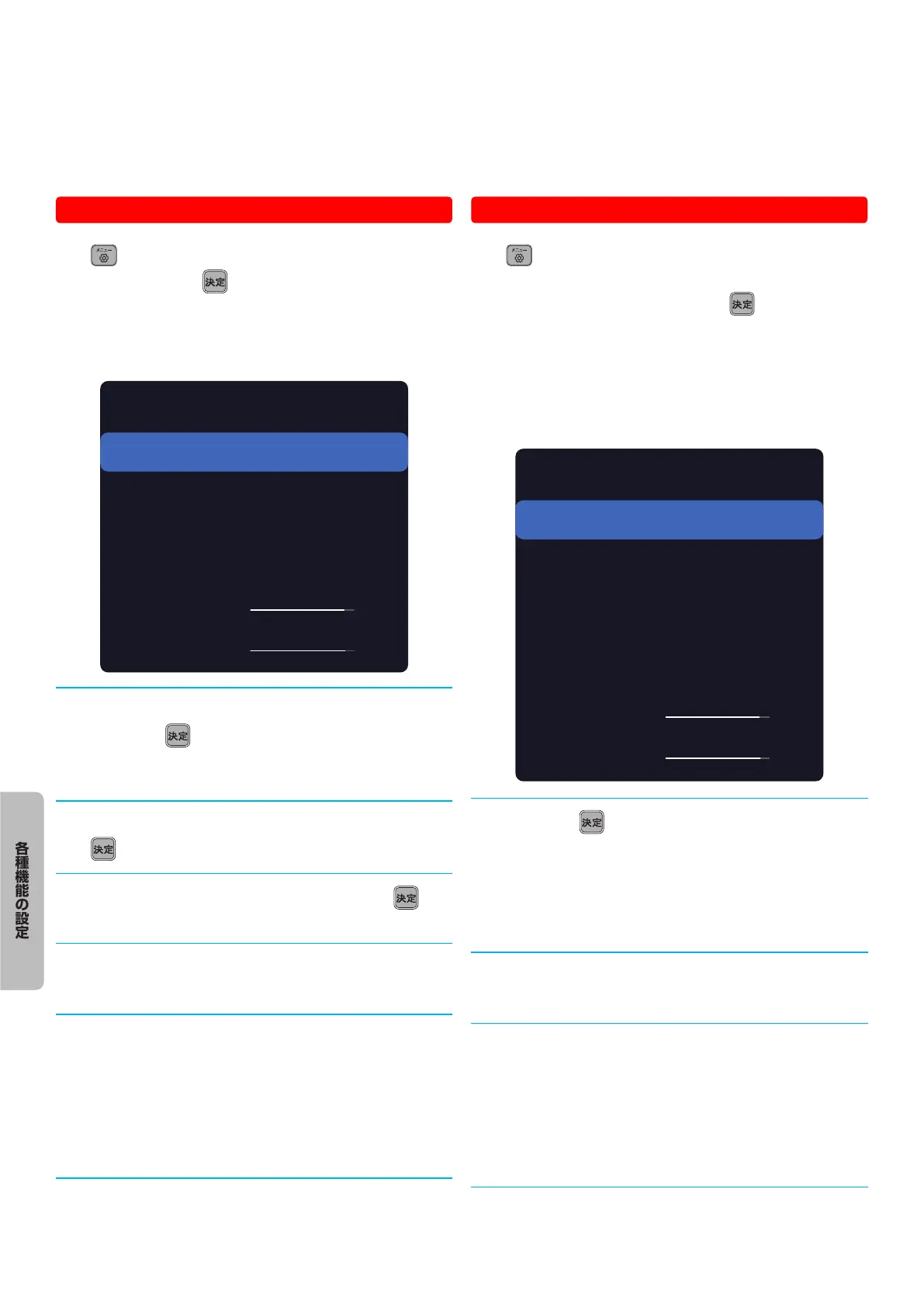 を押し、「設置設定」.⇨.「アンテナ設定」