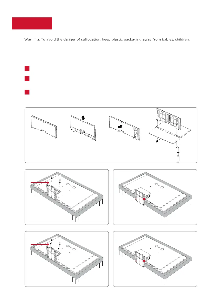remove the protective film after installation. 50’’ model has no subwoofers on the back.