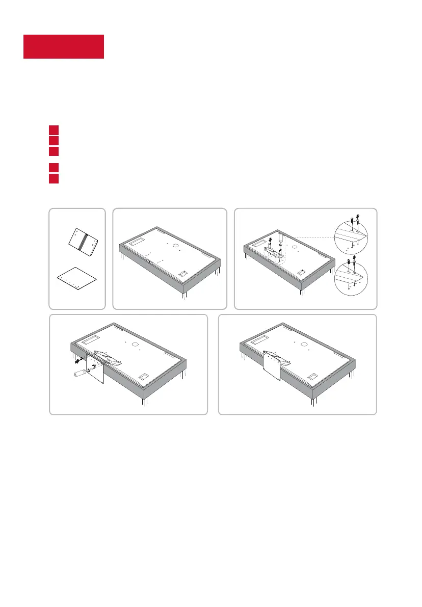 Put the stand neck component into place and fix it with 4 screws from the accessory bag. You