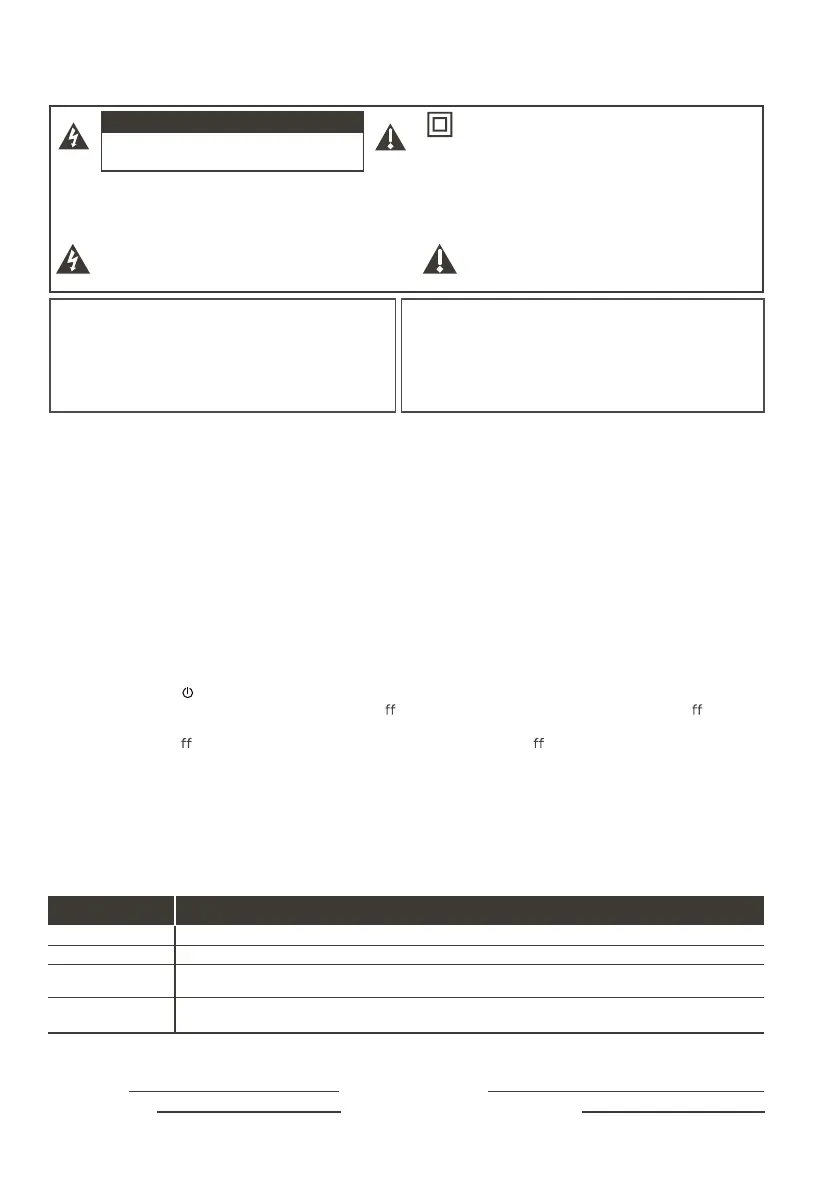 Caution: To reduce the risk of electric shock, do not remove cover (or back). No user serviceable parts inside.
