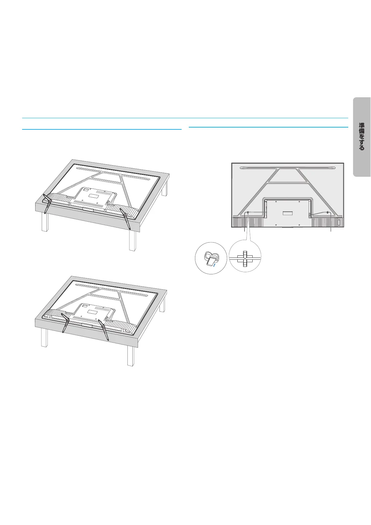 ●● 組立中に画面に傷がつかないよう、画面の下に軟らかい布などを置くようにしてください。