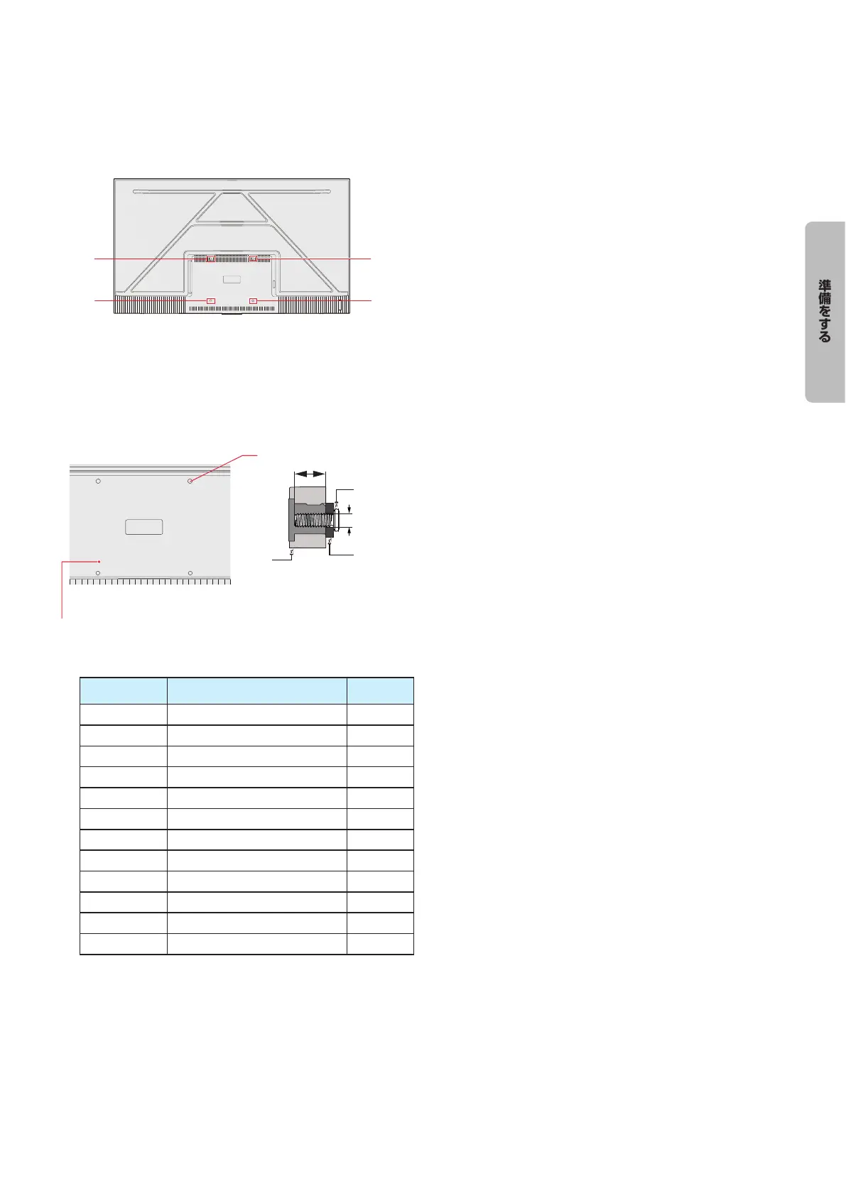●● 壁掛け用ネジの実際の長さは、壁掛け金具の厚さにより変