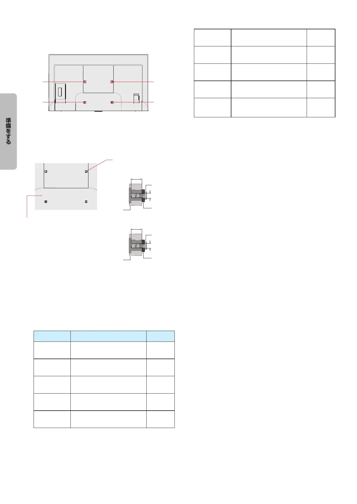 ●● 壁掛け用ネジの実際の長さは、壁掛け金具の厚さにより変
