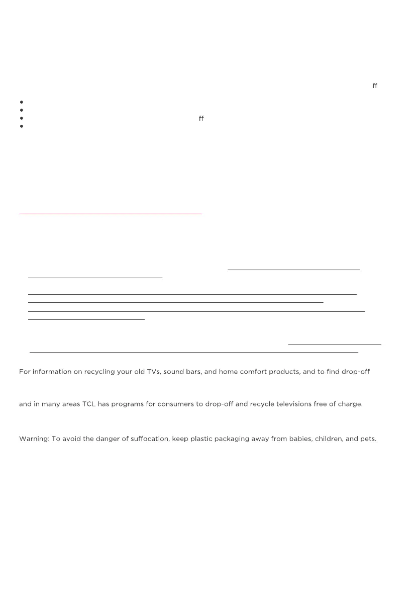 locations in your area, please visit the “Electronics Recycling” area of the TCL website at support.tcl.com..