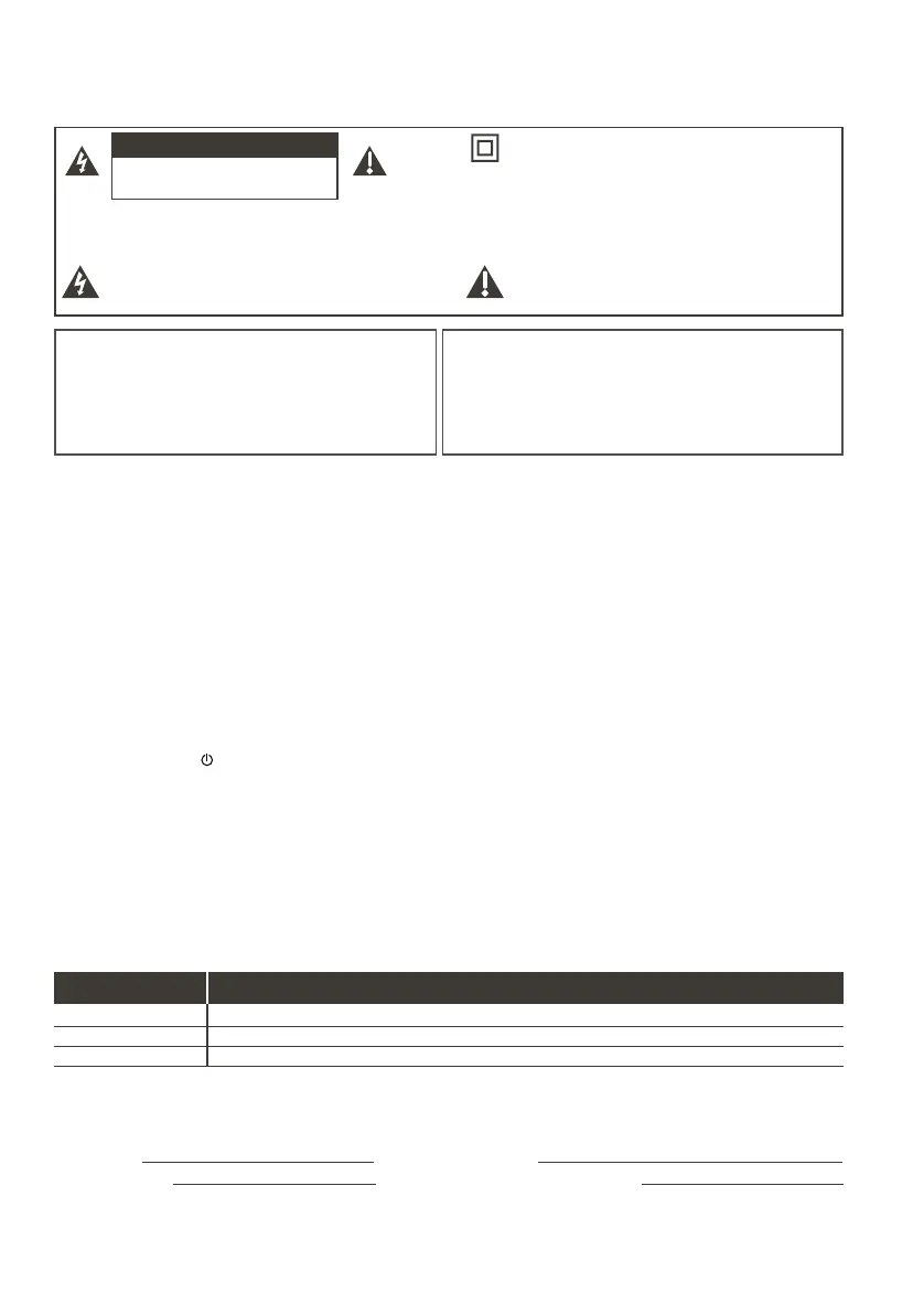 Caution: To reduce the risk of electric shock, do not remove cover (or back). No user serviceable parts inside.