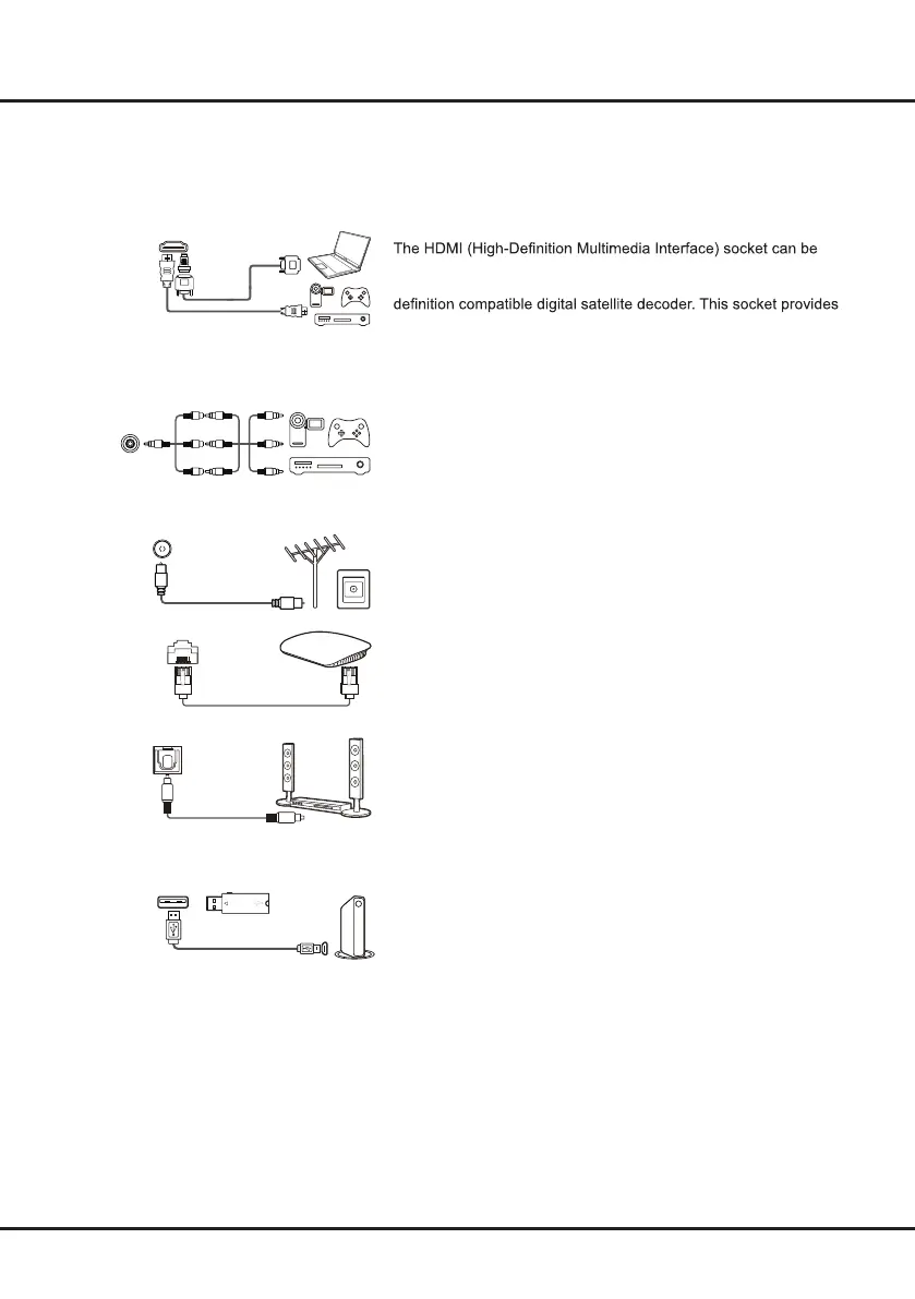 Note: The location and names of the sockets on the TV may vary according to TV model, and not all sockets are
