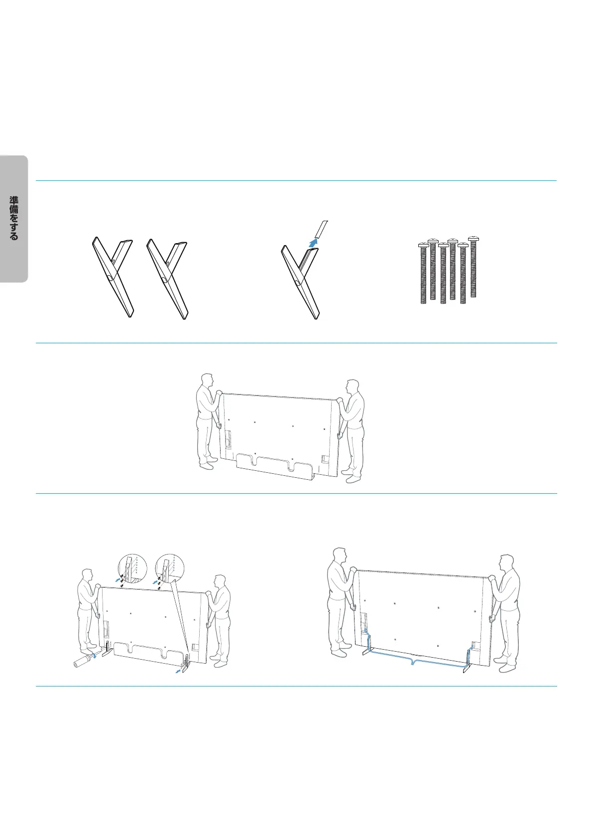● 組立中に画面に傷がつかないよう、画面の下に軟らかい布などを置くようにしてください。