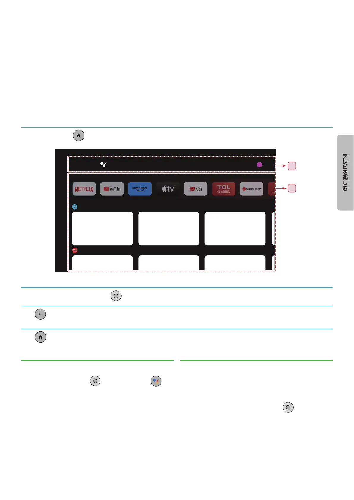 ● スマートテレビのホームページでは、音声やソフトキーボード入力によってコンテンツを検索したり、お勧めのコンテンツ
