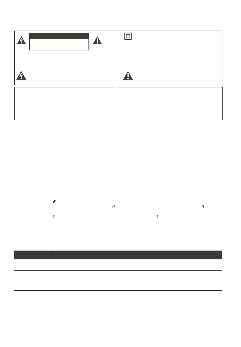 Caution: To reduce the risk of electric shock, do not remove cover (or back). No user serviceable parts inside.