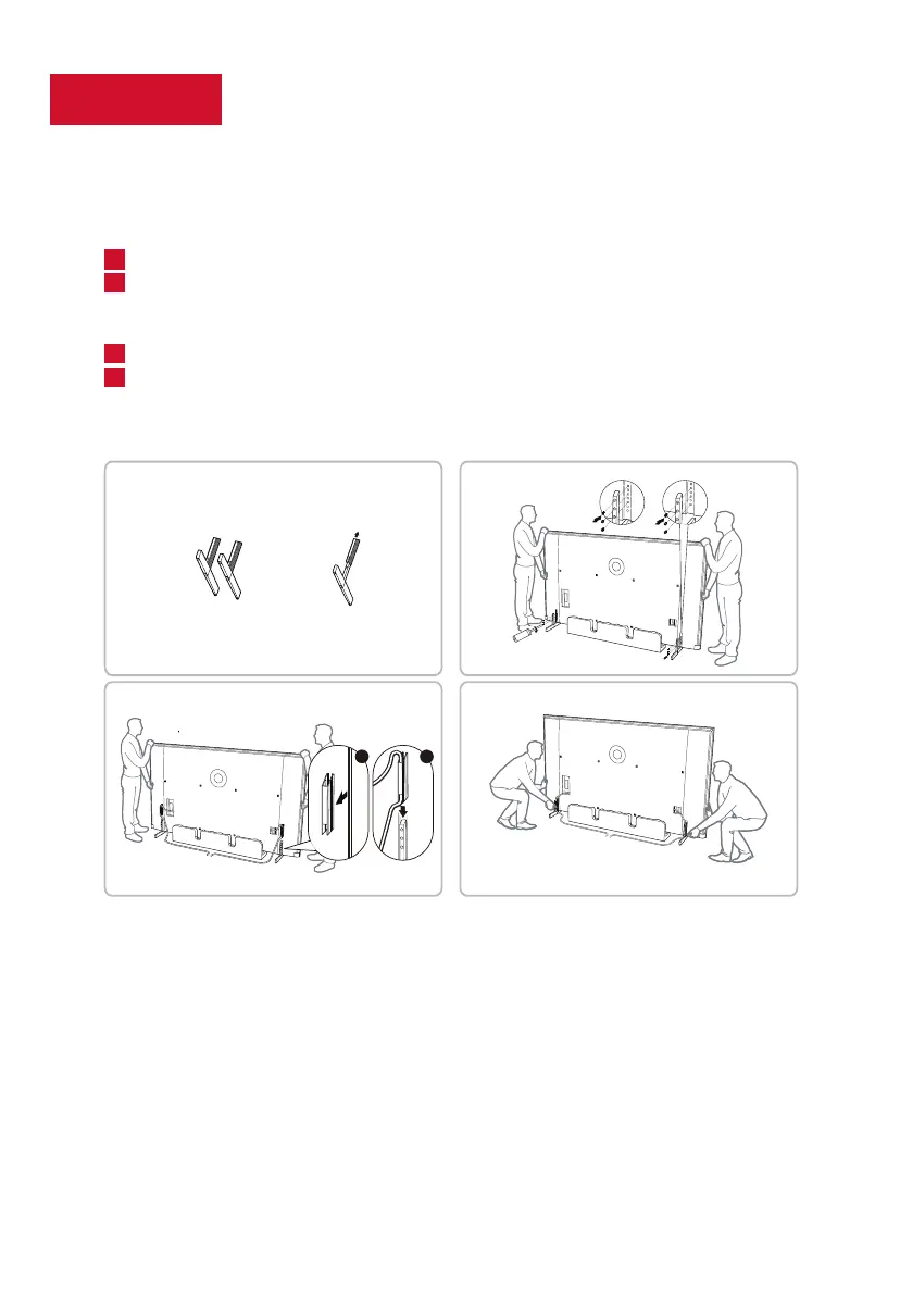 on the TV. Secure the stands with 6 M5x25mm screws from the accessory bag. You have two