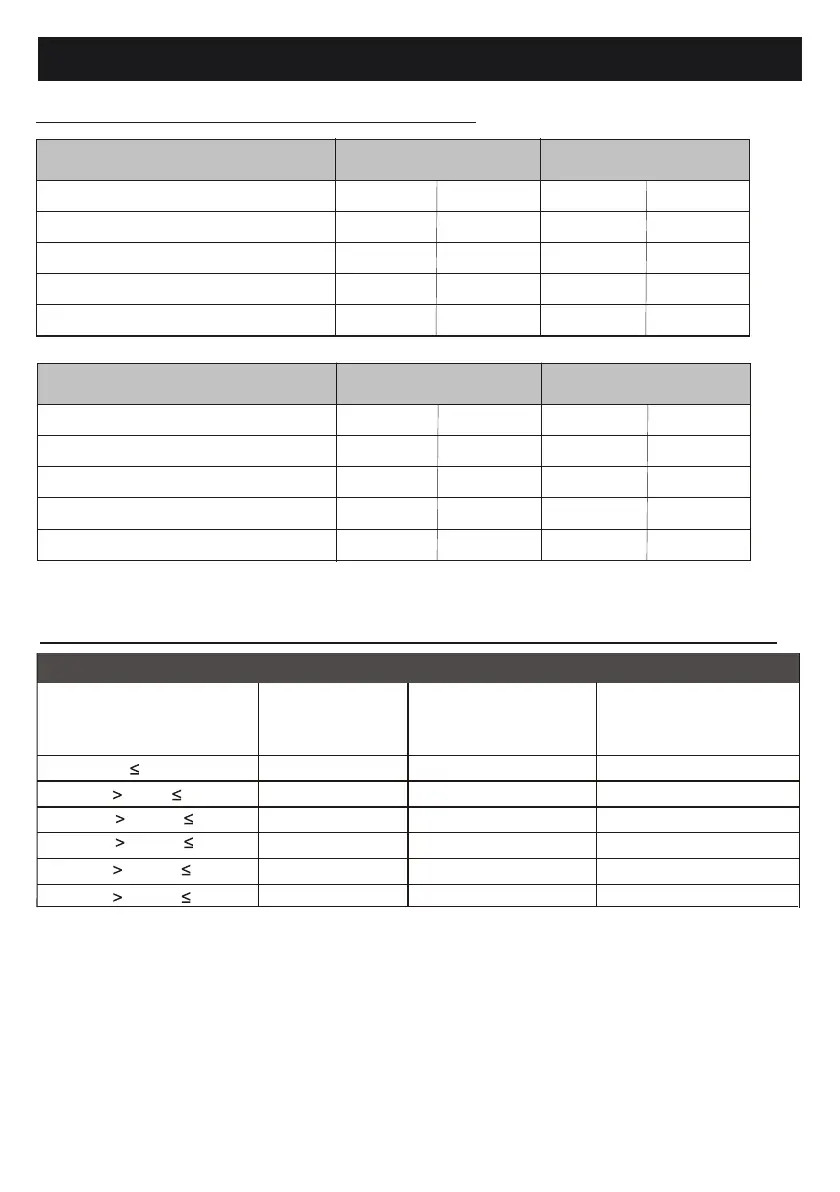 This table is only for reference, the installation shall meet the requirements of local laws and