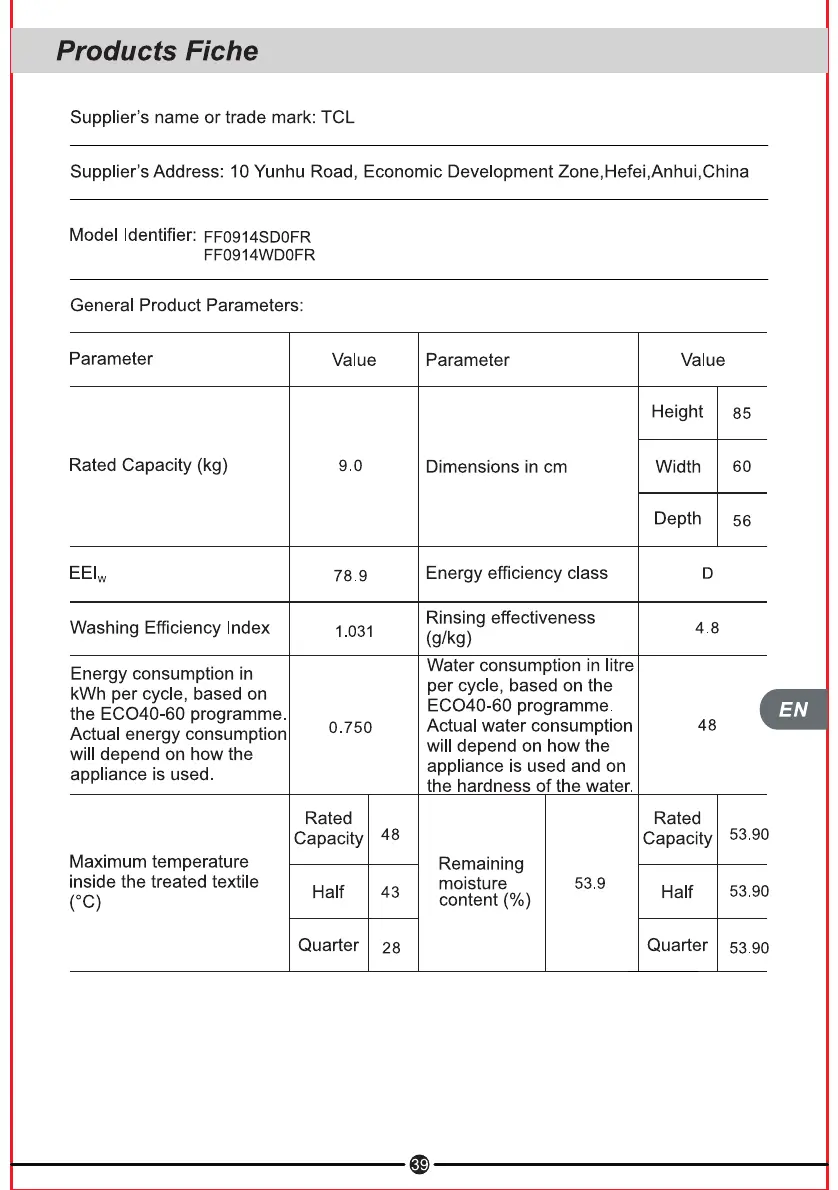 Bekijk gratis de handleiding van TCL FF0914WD0, stel vragen en lees de antwoorden op veelvoorkomende problemen, of gebruik onze assistent om sneller informatie in de handleiding te vinden of uitleg te krijgen over specifieke functies.
