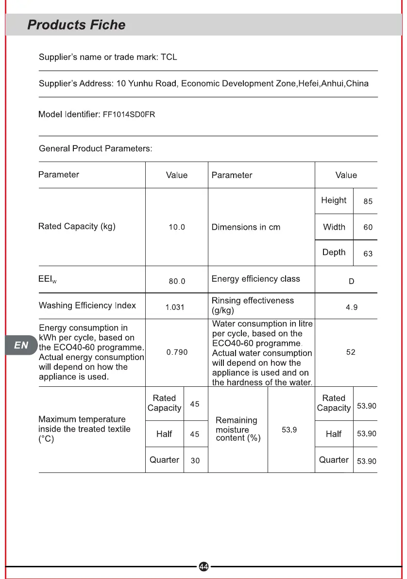 Bekijk gratis de handleiding van TCL FF0914WD0, stel vragen en lees de antwoorden op veelvoorkomende problemen, of gebruik onze assistent om sneller informatie in de handleiding te vinden of uitleg te krijgen over specifieke functies.