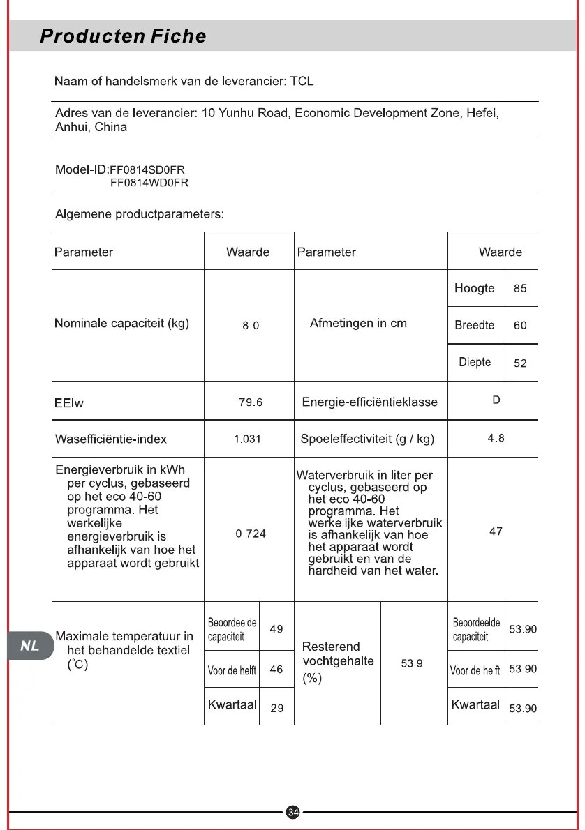 Bekijk gratis de handleiding van TCL FF0914WD0, stel vragen en lees de antwoorden op veelvoorkomende problemen, of gebruik onze assistent om sneller informatie in de handleiding te vinden of uitleg te krijgen over specifieke functies.