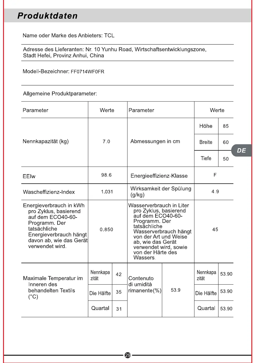 Bekijk gratis de handleiding van TCL FF0914WD0, stel vragen en lees de antwoorden op veelvoorkomende problemen, of gebruik onze assistent om sneller informatie in de handleiding te vinden of uitleg te krijgen over specifieke functies.