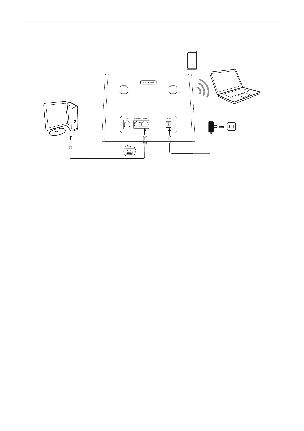 You can connect your devices to the CPE network wiredly or wirelessly as illustrated below.
