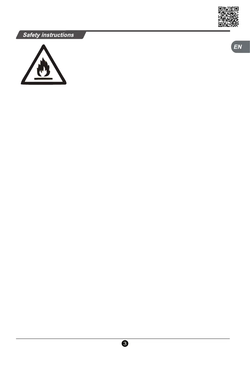 Warning: Risk of fire / flammable materials.