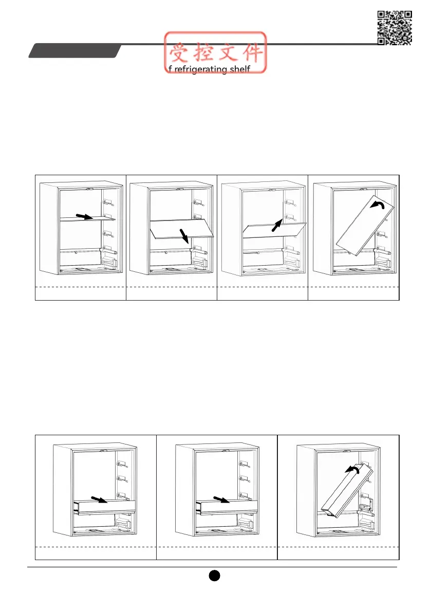 Note: For shelf disassembly, open the door to the max. extent to facilitate shelf disassembly or prevent door