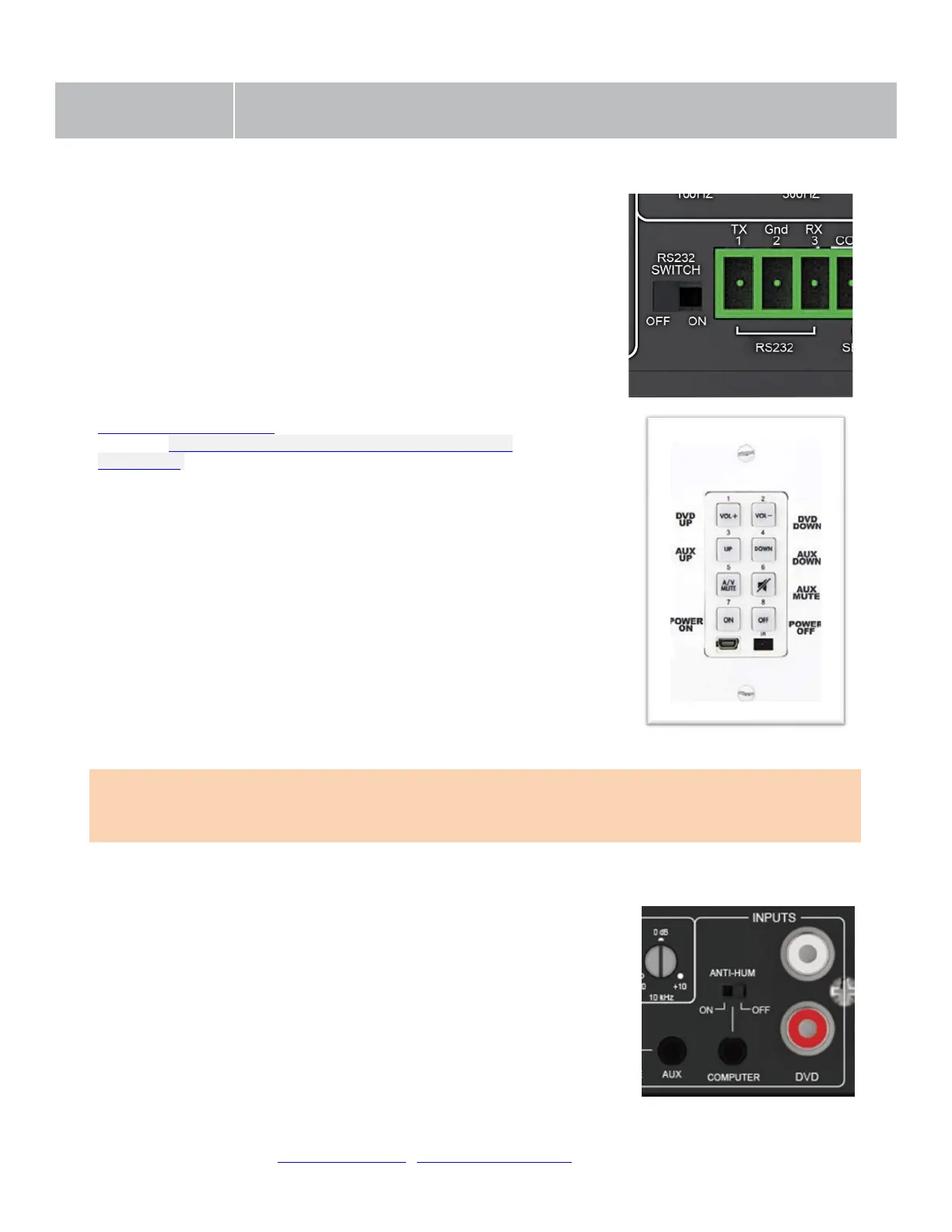 When panel is not connected, RS-232 switch must be in "OFF" position for amplifier controls to function.