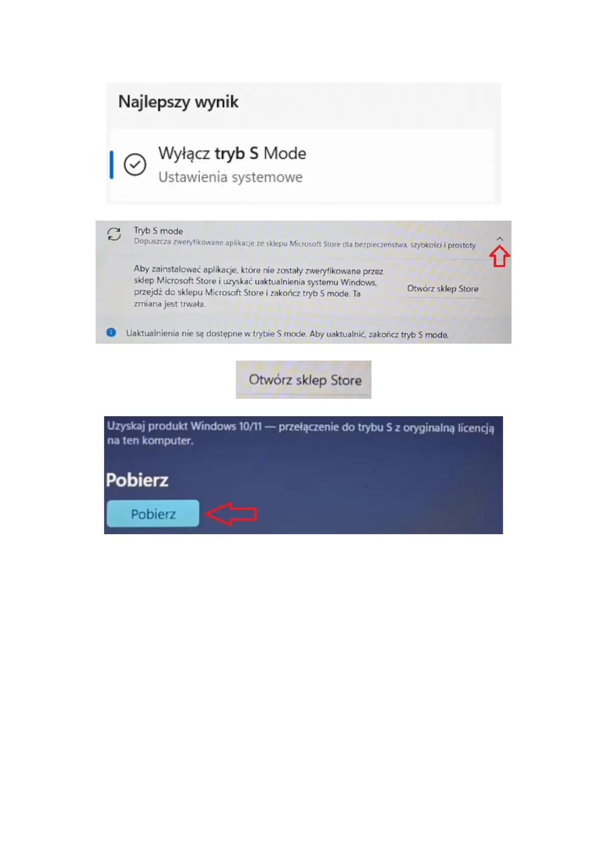 3. W nowym oknie rozwiń pasek ,,Tryb S mode”.
