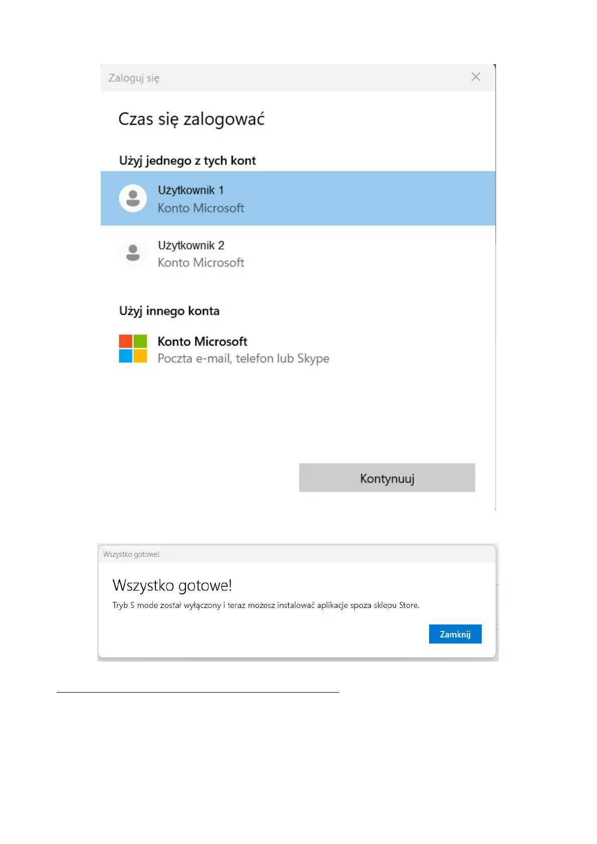 7. Zostaniesz poinformowany o poprawnym wyłączeniu ,,Trybu S” oknem