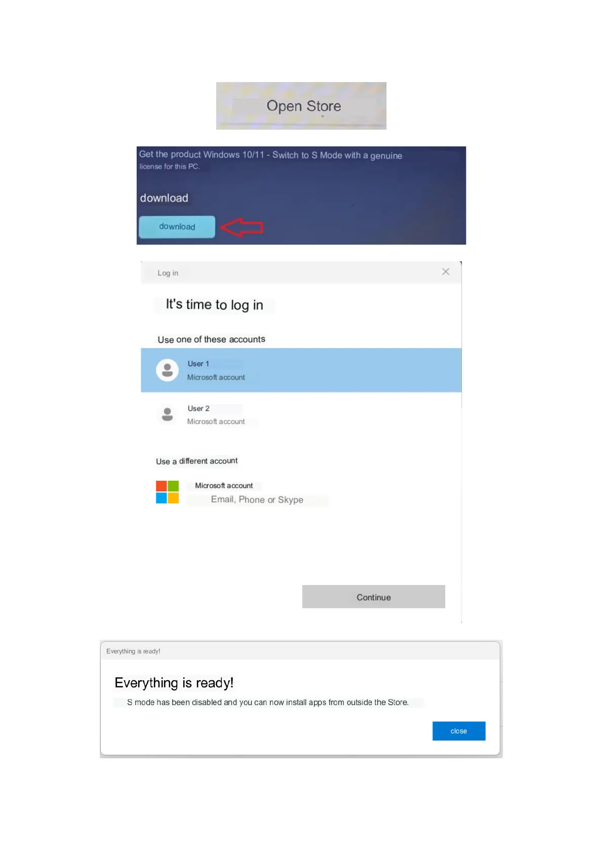 7. You will be informed about the disabling of ,,S Mode" with a dialog box.