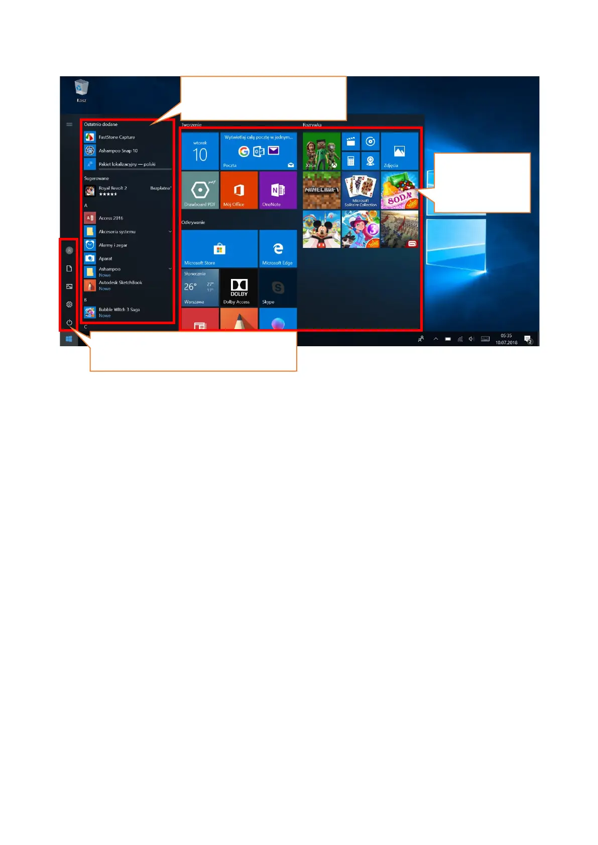 komputerze. Potem znajdują się ikony aplikacji, które można umieszczać