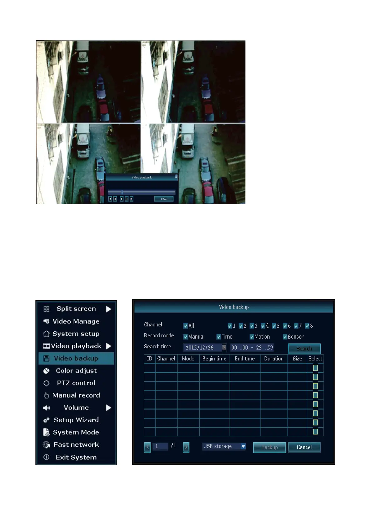 Click the mouse right button on the main interface Video backup choose channel No.