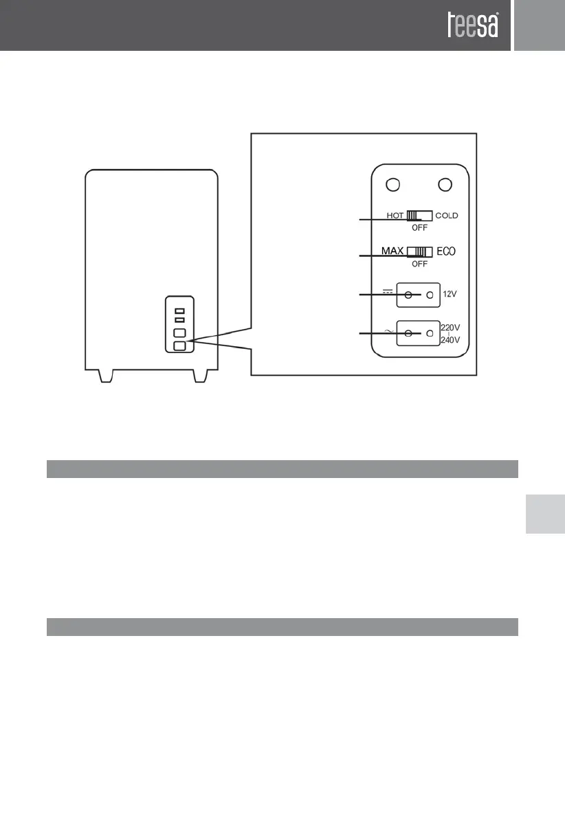 1. Schließen Sie das Netzkabel an die Kühlbox (das Bild rechts) und an die Netzsteckdose AC 220~240V.