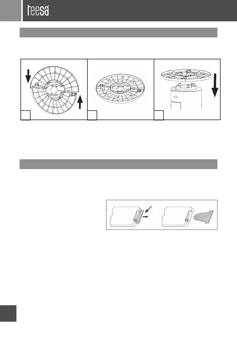 2. Pripevnite základňu k spodnej časti ventilátora a otáčajte ňou v smere šípok na základni,