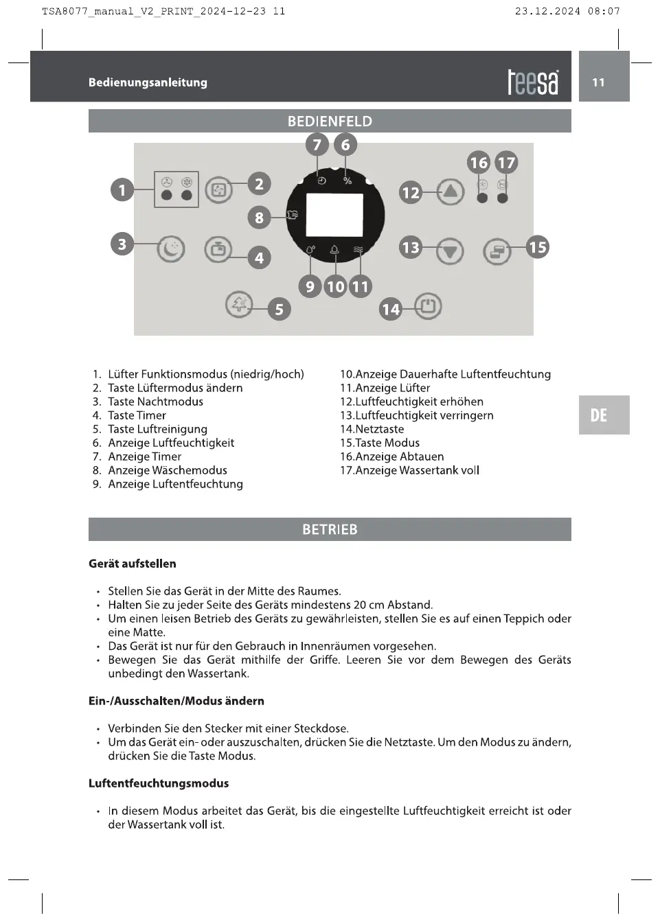 Teesa TSA8077 handleiding