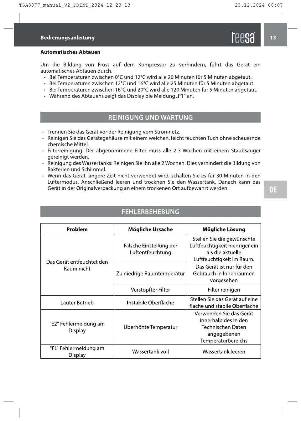 Teesa TSA8077 handleiding