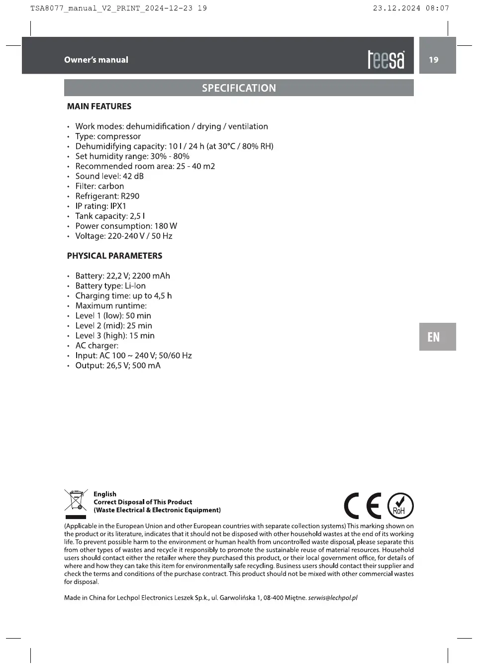 Bekijk gratis de handleiding van Teesa TSA8077, stel vragen en lees de antwoorden op veelvoorkomende problemen, of gebruik onze assistent om sneller informatie in de handleiding te vinden of uitleg te krijgen over specifieke functies.