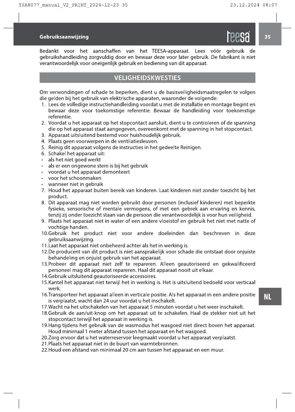 Bekijk gratis de handleiding van Teesa TSA8077, stel vragen en lees de antwoorden op veelvoorkomende problemen, of gebruik onze assistent om sneller informatie in de handleiding te vinden of uitleg te krijgen over specifieke functies.