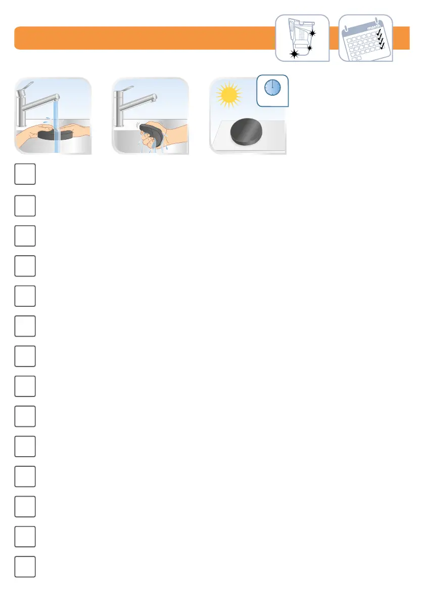 Lavare il ltro in spugna con abbondante acqua pulita. Strizzarlo per rimuovere l’acqua in