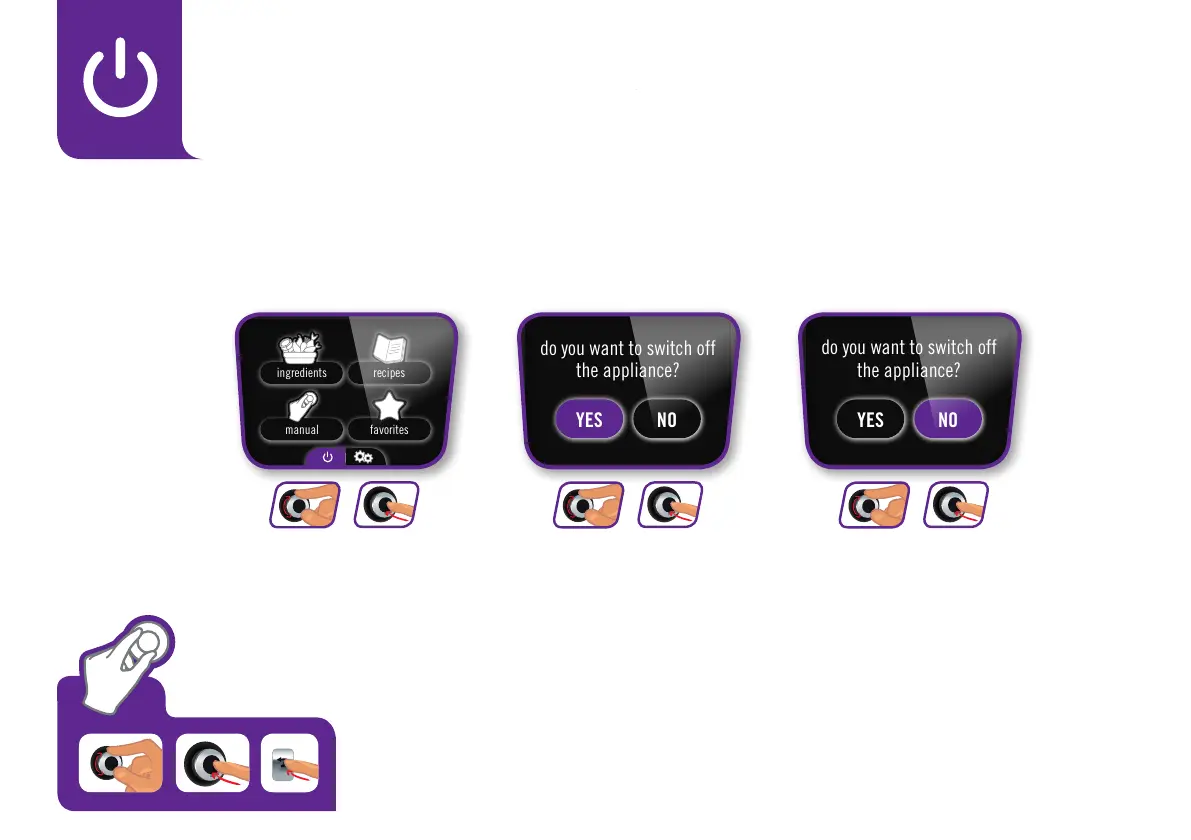 Pressing ON/OFF will allow you to switch off the appliance.Select and confirm