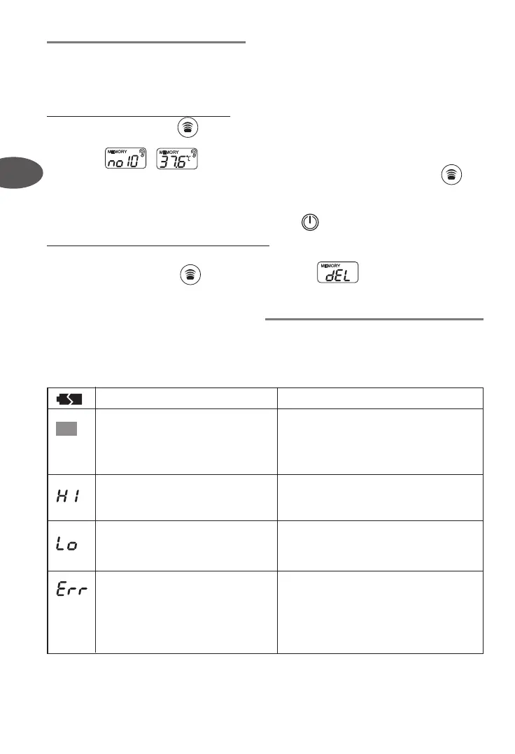 • Para leer las 10 memorizaciones, pulsar brevemente y de forma sucesiva la tecla : se