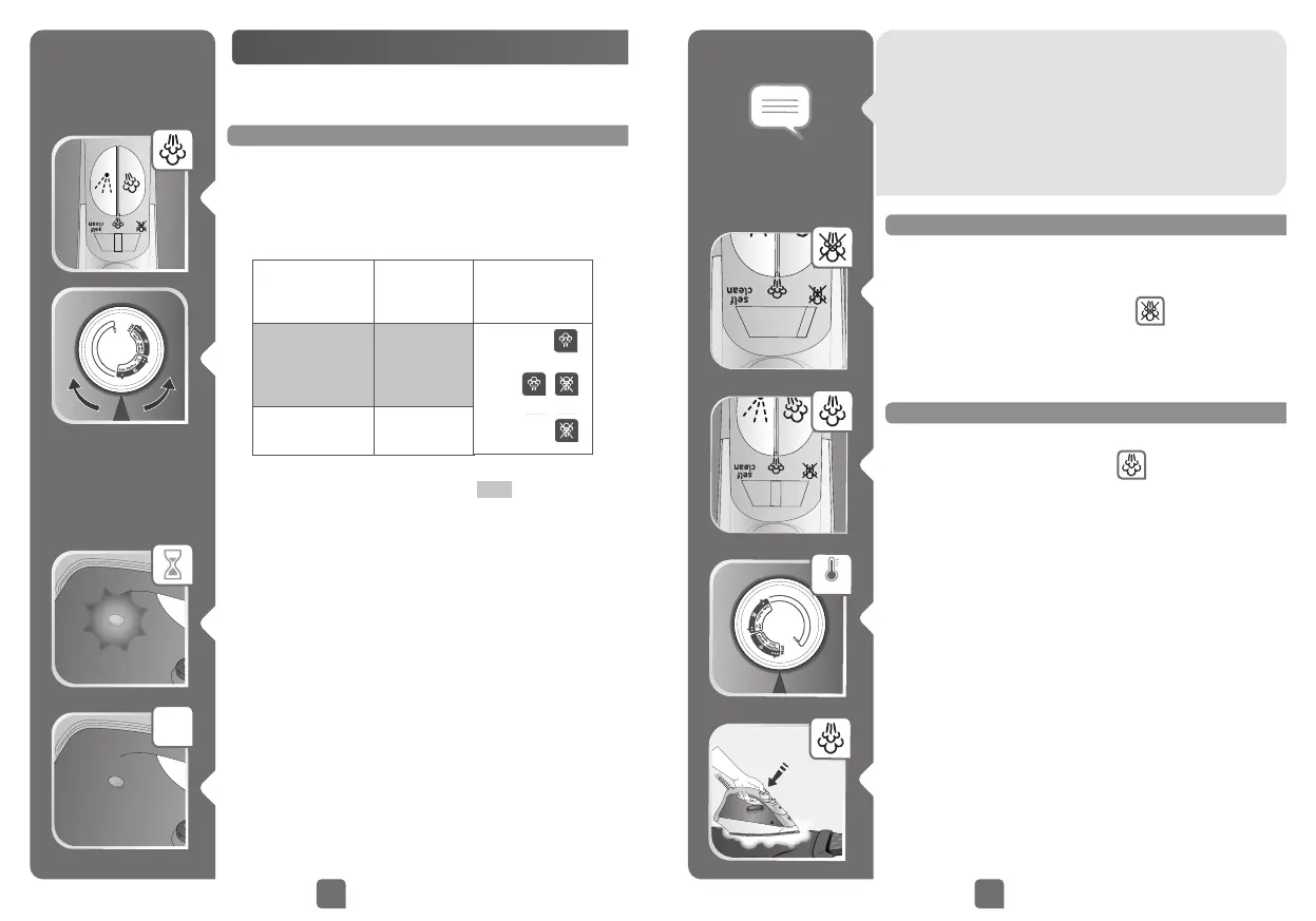 • Set the temperature according to the fabric to be ironed.