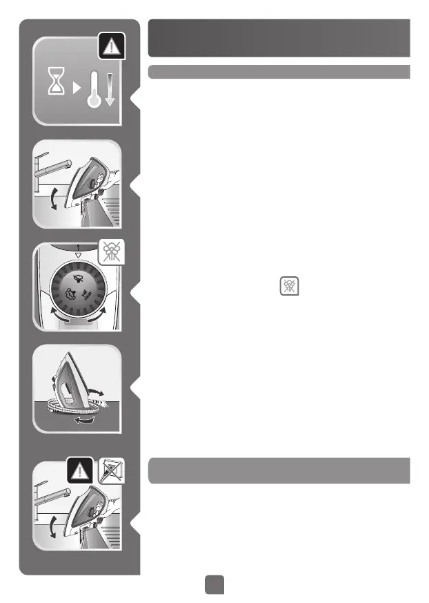 • Enroulez le cordon autour du talon du fer. Rangez le fer sur son